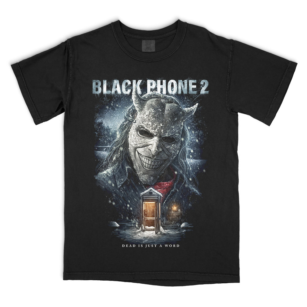 Our “Cold Call” T-Shirt brings the chilling world of The Black Phone 2 to life. Featuring The Grabber in haunting, frost-covered detail, this design captures the icy dread of Blumhouse’s terrifying sequel. With the phrase Dead Is Just a Word beneath the ominous phone booth, it’s a stark reminder that some calls never end. Cold, unsettling, and unforgettable — just the way horror should be.