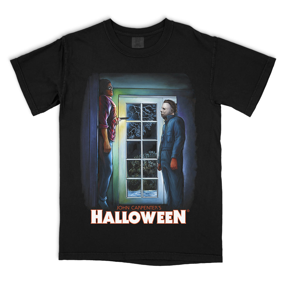 “I met him... fifteen years ago.” This officially licensed Halloween tee features our “The Devil’s Eyes” design — a stark portrait of Michael Myers inspired by Dr. Loomis’ chilling words. Cold, expressionless, and unforgettable, just like the moment that defined the Shape.
